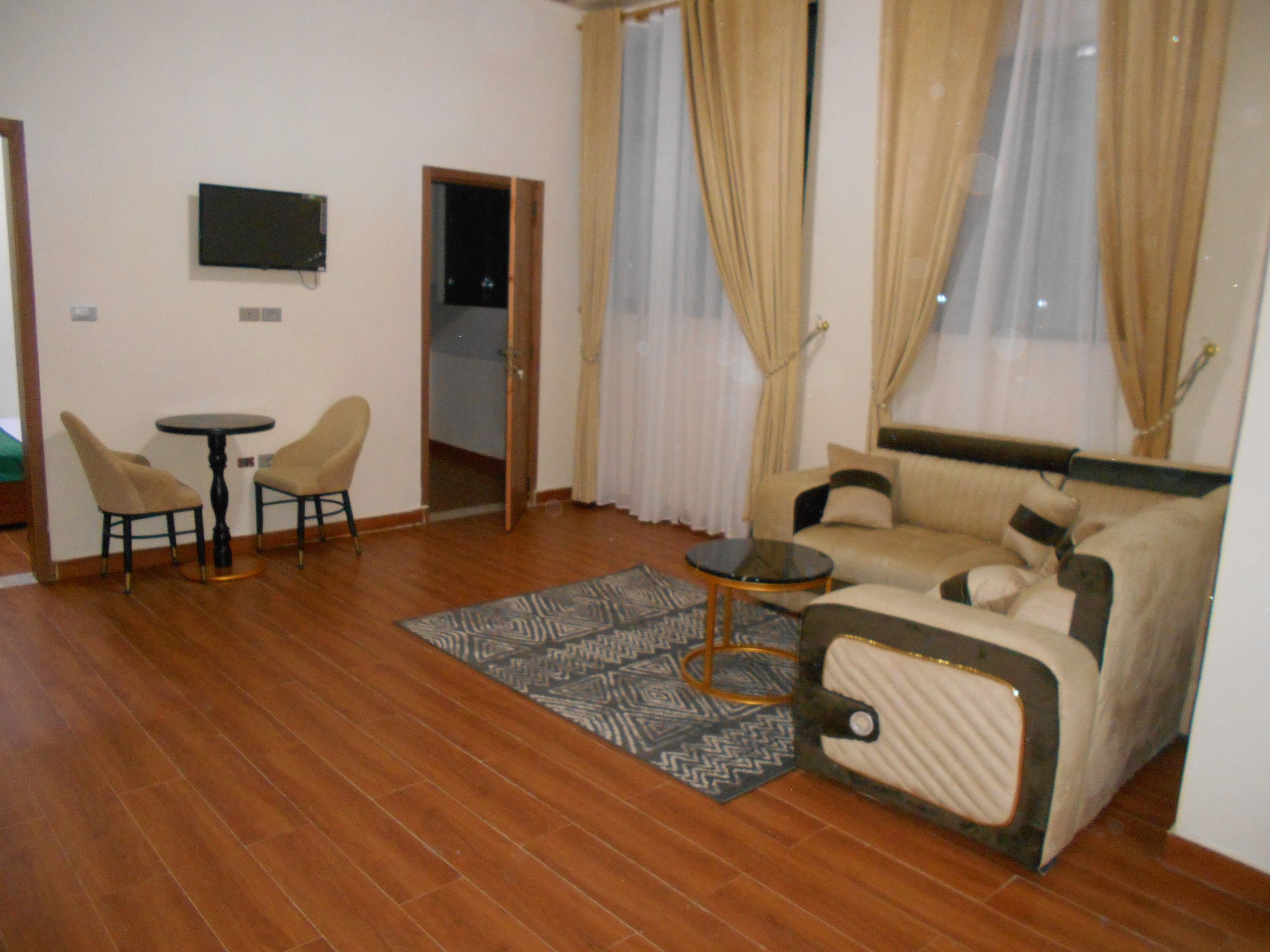 • Living & Entertainment Space: A welcoming area to relax and recharge: Modern salon with multiple comfortable sofas 32-inch smart TV with access to local and international channels Ample natural light and tasteful decor creating a peaceful ambiance